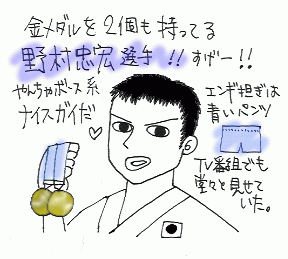 ほんと、マスコミにはもう少し考えて欲しいものである。これも一重に、彼らの勉強不足ではないだろうか。ずーっとオリンピックを追っかけてきた記者や番組にとっては、ヤワラちゃんも野村も、共にかわらない「すごい人」で「頑張って欲しい人」なのである。メジャーなヤワラちゃんや、高橋尚子だけでなく、卓球だとかボートだとかの選手の健闘をも祈っているのである。
