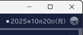 メインメニューの左側に日付が表示されます。文章を書くことを職業にしている方にとって〆切は避けることのできないものですから、常に日付を意識されていると思います。なのですぐ目に付くところに日付を表示させてみました。日付の先頭に小さな四角形の色は土曜日だと青に、日曜祝日は赤に変化します。