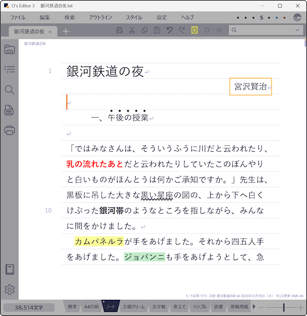 O's Editor3 を小説執筆に使う利点といえるでしょう。