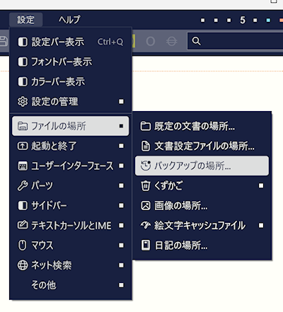 ファイルを保存する際にバックアップが作成されます。小説を書くときに「一週間前に書いたが削除してしまった表現をもう一度使いたかった」と焦る作家にとってバックアップの存在は大変重要です。しかしファイルを保存する度にバックアップファイルを上書きしてしまうと直近のバックアップファイルしか存在しないことになり、ではファイル保存する度に毎回バックアップファイルを残してしまうとバックアップファイルが無限に増えることになり目的の文章を探すことも困難になります。O's