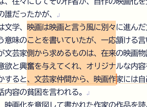 箱型選択という選択方法があります。下図のように行の途中から途中まで箱の形で選択する方法です。表の下書きのような文章で使うと重宝します。ただし、標準スタイルなど等幅フォントのスタイルで使用してください。プロポーショナルフォントのスタイルでも実行可能ですが左右の位置がバラバラになるので大変選択しづらくなります。