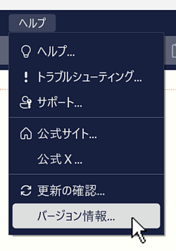 メインメニューの[ヘルプ|バージョン情報]を実行すると、バージョン番号など O's Editor3 に関する情報をまとめたバージョン情報ダイアログを表示させることができます。