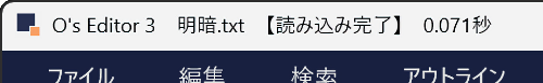 キャプションバーには開いている文書のファイル名が表示されます。また、文書を開くときやウィンドウのサイズ変更で折り返しが変更されるときは、キャプションバーに解析行数の経過と行解析にかかった秒数もあわせて表示されます。一般的な