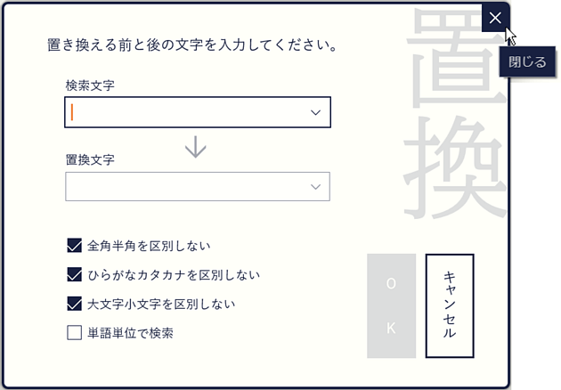 ダイアログの右上にマウスを合わせると閉じるボタンが表示されます。ダイアログを閉じればキャンセルしたことになります。