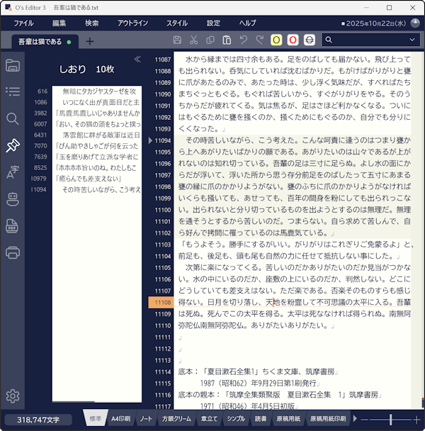 アウトラインバーは文書の見出しを解析したうえでツリー状に表示されるサイドバーです。クリックするだけでその見出しに飛ぶことができ、各ノード単位で場所を入れかるなどの操作も可能です。アウトラインバーの詳細はこちらをご覧ください。