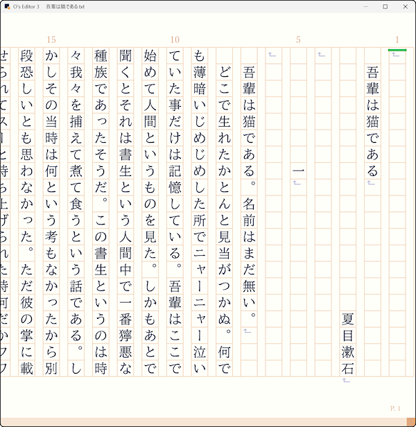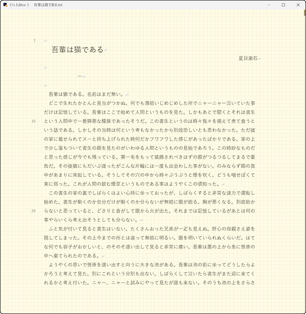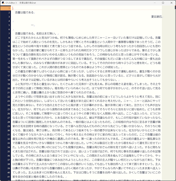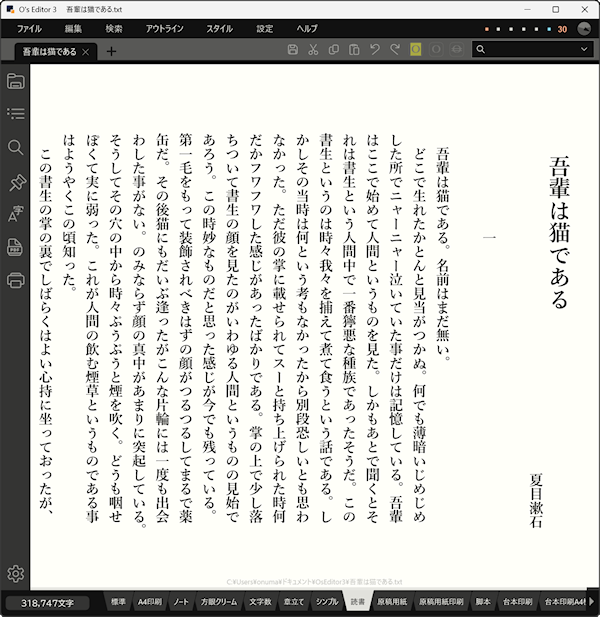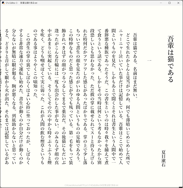 メインメニューの[ウィンドウ|編集ビューモード]またはショートカットキー[F11]を実行すると編集ビューモードに移行します。例えば下のような文書を開いているときに[F11]キーを押してみてください。
