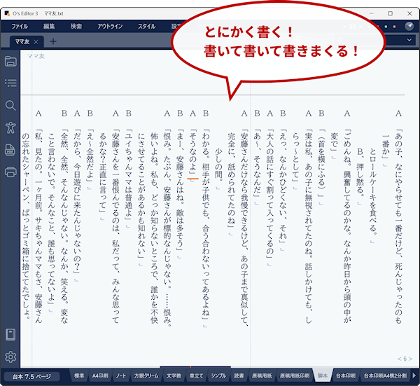 O's Editor3 からひな形ワードファイルを作成する手順は以上です。登場人物やあらすじもあらかじめ O's Editor3 で用意しておくことも可能ですが詳細については後日追記します。