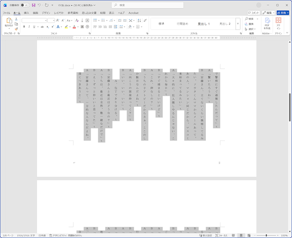 O's Editor3 からエクスポートされたワードファイルを開いた状態で全文を選択してコピーします。